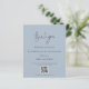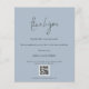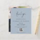 Script de Obrigados Azuis Dusty com Galeria de Fotos de Casamento de Código QR. Um alternativo de 4,5 pol x 5,6 pol com preço inferior. Disponível em um STOCK DE CARTÃO SEMI-GLOSS 110 lb, que é a opção padrão (mais espesso para convites), OU um STOCK de PAPEL THINNER FINISH 80 lb FINISH (ideal para gabinetes). Os envelopes são um extra opcional e são ligeiramente maiores que o tamanho da placa. Um design de tipografia minimalista com um script de estilo de letra de na moda definido para Obrigado. No verso, substitua a imagem por sua favorita do dia como guardiã para seus convidados. Personalize facilmente o resto do texto com sua mensagem e nomes e substitua a amostra de código QR por sua própria guia para sua galeria de fotos de casamento online.