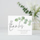 Obrigados de Casamento de Fotos do Script Eucalyptus de Orçamento. Um alternativo de 4,5 pol x 5,6 pol com preço inferior. Disponível em um STOCK DE CARTÃO SEMI-GLOSS 110 lb, que é a opção padrão (mais espesso para convites), OU um STOCK de PAPEL THINNER FINISH 80 lb FINISH (ideal para gabinetes). Os envelopes são um extra opcional e são ligeiramente maiores que o tamanho da placa. Um galho dourado elegante de eucalipto verde passa parcialmente do lado direito, com Obrigados de tipografia definidos num guião estilo de letra na moda, para o lado esquerdo. No verso, troque sua foto favorita do dia (de orientação paisagística). O resto do texto na frente você pode facilmente personalizar para suas próprias palavras.