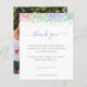 Um valor para o alternativo do ORÇAMENTO em tamanho menor de 4,5 x 5,6" de semirbrilho de 110 lbs, que é de espessura semelhante a um cartão postal (no entanto, não é adequado para uso como cartão postal). POR FAVOR, OBSERVE QUE HÁ UM convite por folha. Chá de panela De Foto Glitter Do Arco-Íris De Orçamento Obrigado. Uma borda falsa de brilho nas cores do arco-íris está no topo, e Obrigado está em um roteiro elegante. Personalize facilmente o texto para seus próprios detalhes. Na parte de trás troque sua foto favorita do seu chá de orientação para retratos.