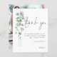 Um valor para o alternativo do ORÇAMENTO em tamanho menor de 4,5 x 5,6" de semirbrilho de 110 lbs, que é de espessura semelhante a um cartão postal (no entanto, não é adequado para uso como cartão postal). POR FAVOR, OBSERVE QUE HÁ UM convite por folha. Chá de fraldas Eucalyptus Foto Obrigado. Estilo moderno minimalista com esta botânica com folhagem de aquarela fluindo para baixo no lado esquerdo e texto para a direita. Um script de estilo manuscrito para Obrigado e o resto do texto que você pode personalizar facilmente. Substitua a imagem de exemplo no verso pela sua foto favorita do seu choro.