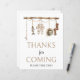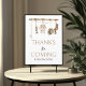 Adicione um toque de charme rústico ao seu chá de fraldas com este lindo cartaz de 'Obrigados por vir'! Projetado com ilustrações aquáticas de artes de pesca, jardineiras e botas, este sinal é um ajustado perfeito para um pequeno chá de fraldas temático de pescadores. Use este sinal que aprimora o estilo coeso da decoração de eventos.