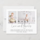 Um valor para o alternativo do ORÇAMENTO em tamanho menor de 4,5 x 5,6" de semirbrilho de 110 lbs, que é de espessura semelhante a um cartão postal (no entanto, não é adequado para uso como cartão postal). POR FAVOR, NOTE que existe UM por folha. Orçamento Moderno 2 Fotografia Primeira Festa de aniversário Obrigado. Basta substituir as duas fotos de exemplo por suas próprias e personalizar com sua mensagem de obrigado. O amor e os obrigados estão em um roteiro de na moda.