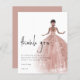 Rosa de Orçamento Dourado Cabelo Escuro Gown Quinceañera Obrigado. Um alternativo de 4,5 pol x 5,6 pol com preço inferior. Disponível em um STOCK DE CARTÃO SEMI GLOSS 110 lb, que é a opção padrão (recomendada para convites), OU um STOCK DE PAPEL THINNER SATIN FINISH 80 lb (ideal para gabinetes). Estilo de brilho para a sua obrigado de 15 com a vista de trás de uma menina de cabelos escuros num lindo vestido de ouro rosa à direita, e Quinceañera em um roteiro de estilo manuscrito. Personalize facilmente o resto do texto para seus próprios detalhes. Um plano de fundo rosa dourado de coordenação está do outro lado, que pode ser alterado para outra cor se você quiser, por meio de personalização adicional, assim como a cor do texto.