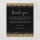 Dourada Festa Glitter Quinceañera Obrigado Black. Um alternativo de 4,5 pol x 5,6 pol com preço inferior. Disponível em um STOCK DE CARTÃO SEMI-GLOSS 110 lb, que é a opção padrão (mais espesso para convites), OU um STOCK de PAPEL THINNER FINISH 80 lb FINISH (ideal para gabinetes). O estilo clássico com bordas de falso brilho dourado está no topo e no fundo em cada lado, e Obrigado está em um script de escrita manual definido na coordenação do ouro. Personalize facilmente o resto do texto. Você também pode alterar as cores do texto e do plano de fundo por meio da opção personalizar mais, se desejar.