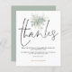 Obrigados Dourados De Script De Folhagem De Casamento Um preço orçamentário MAIS PEQUENO alternativo 4,5" x 5,6". Disponível em um STOCK DE CARTÃO SEMI-GLOSS 110 lb, que é a opção padrão (mais espesso para convites), OU um STOCK de PAPEL THINNER FINISH 80 lb FINISH (ideal para gabinetes). Os envelopes são um extra opcional e são ligeiramente maiores que o tamanho da placa. Este design elegante tem um modo de folhagem de aquarela em verde-sábio e ouro no topo com script na moda set para o cabeçalho. Um fundo de sábio coordenado está atrás. O resto do texto pode ser facilmente personalizado para suas palavras.