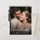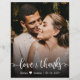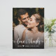 Orçamento Foto de Casamento Moderno Escrito Manuscrito Foto "Amor e obrigados" Escrito Obrigado Cartões. Modelo de cartões de agradecimentos de casamento moderno Na moda com uma foto vertical de cheio na frente com o texto de sobreposição "Amor e obrigados" em uma bela fonte de texto caligráfico com letras giras, com hastes em branco na foto. Adicione seu nome personalizado e sua mensagem de obrigado. Se preferir escrever manualmente a sua nota, basta eliminar o texto de amostra para obter mais espaço. Se precisar de ajuda, entre em contato com o designer!