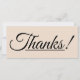 Este obrigado de cartão glamouroso e luxuoso, que mostra a mensagem "Obrigados!" na frente, junto com uma mensagem personalizada no verso. Poderia ser usado para oferecer obrigados a alguém que fez um ato especial.