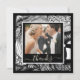 Obrigados com sua foto de evento, contra um elegante design linear branco e preto preto. A tangente abstrato preto e branco é uma peça de arte digital original. Cada linha tem uma curva e cria uma curva. Tipografia colorida com champanhe. Back tem um quadrado branco enquadrado para suas palavras personalizadas de obrigados, contra uma versão mudada da mesma arte.