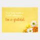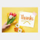 Digam obrigados com este design único que mostra a mensagem simples na nota adesiva, "Obrigados!" Design aparece em segundo plano, segurando o buquê de tulipas. Todo o texto pode ser personalizado para atender às suas necessidades, mas tem este texto de espaço reservado. "Sua ajuda fez uma grande diferença. Estou grato."