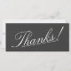 Este respeitável design de obrigado de cartão que você possui apresenta a mensagem "Obrigados!" na frente, juntamente com uma mensagem personalizável na parte traseira. Pode ser usado para mostrar apreço a alguém que tenha comparecido a um casamento, a um funeral, a uma formatura ou a qualquer outro evento.