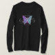 O sobrevivente de câncer do tiróide Sleeved por muito tempo a camiseta em cores escuras com design da borboleta na cerceta, no roxo, e no rosa.