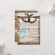 Estamos a ser apanhados! Convocações de Casamento de Madeira de Barão-Campo Russo com ferraduras duplas no topo e impressão de arco de rendas e de gêmeos. Estas são perfeitas para qualquer tipo de casamento rústico ou de celeiro. O suporte é acentuado em azul de turquesa.