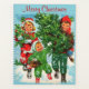 Planeador de férias divertido com um retrato brilhante e colorido desenho de Natal de crianças felizes e alegres trazendo a árvore de Natal e galhos sagrados de volta para casa depois de cortá-la na floresta. Personalize as áreas de texto frontal e traseira com sua própria mensagem ou nome. Acompanhe o seu horário de férias.