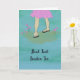 A mão pintada e desenhada ganha um bom cartão para um dedo quebrado. A design é apenas pernas de uma mulher com saia violeta e flores sobre um fundo de turquesa pintado.