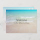 Bem-vindo ao cartão postal da aula do professor. Imagem cêntrica de oceano e praia com texto personalizável em frente e atrás. Incluir o nome do professor e a mensagem pessoal para cada aluno.