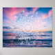 Uma poster com um boho mandela desenhado à mão sobre uma vibrante fotografia azul e rosa do oceano no pôr do sol, tirada em Maui, Havaí. Se você quiser alterar o tamanho da foto, clique em "Personalizar!" e altere o tamanho da imagem para eliminar qualquer branco que não quiser nas bordas.