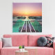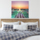 Canvas de Arte de Bass de Praia Sunset Ocean. Uma guitarra de baixo etéreo se estende através de uma praia, como vidro sobre o oceano até o pôr do sol. Uma peça evocativa para inspirar seu músico ou amante de música favorito.