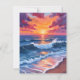 Ocean Sunset Beach Waves Watercolor Card
