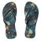 Um par de chinelos com um padrão azul elegante com estrelas-do-mar, representando o oceano.