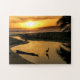 Quebra-cabeça com água e reflexões são difíceis. Você sabe disso. Um nascer do sol ouro, o pôr do sol aparece no céu e uma pequena piscina cheia pelo oceano ao fundo. Um ladrão solitário ou uma erva está caçando, silenciado à luz do ouro e refletido na piscina do ouro. As frentes escuras de uma árvore tropical lançam sombras reflexivas. Isso está disponível em vários tamanhos e graus de dificuldade.