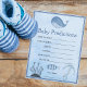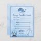Belo cartão azul de previsão de chás de fraldas com temas de oceano com cor d'água, apresentando um conservador náutico como O em Ahoy. Bons animais costeiros, acima e abaixo do seu belo jogo de adivinhação, incluindo uma baleia e um peixe debaixo do mar. Cartões temáticos de praia adoráveis com data de nascimento, comprimento e palpites de peso.
