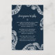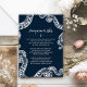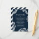 Mande seus convidados seus desejos adicionando este cartão de Desejo Honeymoon ao seu convite de casamento. O design apresenta tentáculos azuis de polvo marinho envoltos no cartão. A parte de trás apresenta um elegante design de quadro decorativo branco. Compre os itens de casamento coordenadores para combinar (vendidos separadamente). Itens correspondentes podem ser encontrados em nossa coleção 'Octopus Náutico do Marinho'.