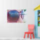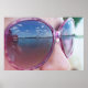 Um poster mostrando os óculos de sol com o céu e as reflexões de água