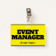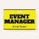 Este design de crachá atraente apresenta a mensagem "EVENT MANAGER". Um crachá como este poderia talvez ser usado para identificar que o usuário é oficial em um evento. [~Z0000307]