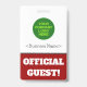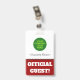 Este design de crachá atraente apresenta a mensagem "OFICIAL CONVIDADO!" e um nome personalizável da empresa ou outra mensagem personalizada. Ele também apresenta uma imagem personalizável do logotipo da empresa ou organização. Um crachá como este poderia ser usado para identificar que alguém em um local de trabalho ou empresa é um convidado/visitante autorizado. [~Z0000307]