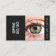 Oftalmologista Olho Cartão de visita negro é um perfeito design moderno e minimalista que é simples de se servir. O foco ampliado do olho representa o oftalmologista e optometrista e, com o fundo preto de ambos os lados, pretende fazer um efeito focal do assunto principal.