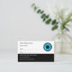 Cartões de visitas de lembretes modernos de atendimento ao cliente criado a um oftalmologista, Optometrista ou Eye Doctor em um centro visual de atendimento ao olho com emblema de óculos e modelo de marcação fácil de ler, você pode personalizar on-line com a capacidade de substituir nosso emblema pelo logotipo de sua própria empresa.