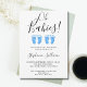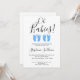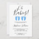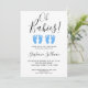 Este convite para chás de fraldas para bebês gêmeos na moda é decorado com tipografia moderna e pés de bebê com aquarelas bonitinhas em azul pastel. Facilmente personalizável. Original Watercolor © Michele Davies.