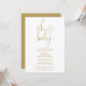 Este convite de chá de bebê com elegante grafia em dourado pode ser personalizado com todas as informações da sua celebração especial, incluindo o código QR do seu registro e os detalhes do evento no verso. Criado por Thisisnotme©