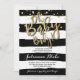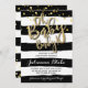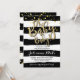 Então, Trendy, este convite apresenta um fundo listrado preto e branco de cor d'água e letras falsas em ouro e confete caindo no fundo.
