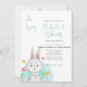 Celebrar a mãe a ser com este chá de fraldas simples de design "oh boy", com um coelho de coelho aquarela em fundo floral.