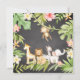 Design adorável com a girafa mais doce, macaco, zebra, elefante e leão, com um quadro de folha de folhas de folhas de folhas de folhas de folhas em fundo preto. Visite o nosso compro para ver toda a nossa coleção do Oh Baby Safari