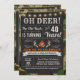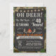 Oh Deer Old Buck Birthday Invitation com camo, conselho de giz e inscrição com idade personalizável.