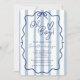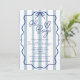 Convite de chá de fraldas "Oh Boy" bonito e moderno, com listras azuis e brancas empoeiradas, um quadro ondulado desenhado à mão e uma fita azul. Um convite simples, mas caprichoso, perfeito para uma futura mãe que quer um chá elegante sem comprometer o elemento doce e divertido da sua celebração alegre.