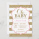 Oh rosa de bebê e convite do chá de fraldas do ouro. Brilho Dourado. Convite do chá de fraldas da menina. Listras preto e branco. Para uma personalização mais adicional, clique por favor "personalizam-no" botão e usam-nos nossa ferramenta de design para alterar este modelo.