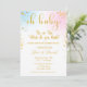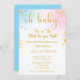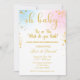 Adorável Oh Baby Gender revela convite. Menino ou menina, o que teremos? Dourada espadilha com pinks e blues.
