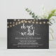 Oh sim, fizemos, Anúncio de Casamento / Convite de Casamento, em quadro negro de fazenda rústica, design de Luzes de Corda. Isto é perfeito para o seu casamento e festa de celebração pós-casamento. Adicione seus detalhes na fonte / letra correspondente.