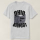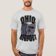 Um mapa de Ohio, estilo grunge, com pegadas de Pé Grande pelo artista/designer Charmaine Paulson em uma (qualquer) t-shirt. A camiseta tem o texto Ohio Home of Bigfoot. ©2012