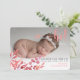 "Oi" rosa com cartão de apresentação de folhas de nascimento