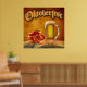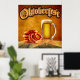 Oktoberfest com texto, cerveja e pretzels art poster.