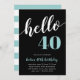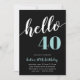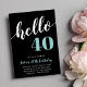 Celebre o seu aniversário marcante com estes convites de festas festivos que apresentam "olá [idade]" em turquesa aqua e letras brancas num fundo preto rico. Personalize com os detalhes do seu partido abaixo. Exemplo mostrado para um aniversário de 40 anos.