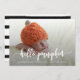 O anúncio de nascimento do Dia das Bruxas com as palavras "olá, abóbora" numa caligrafia branca moderna, com a foto do seu bebê mostrada atrás. A camada branca e o texto podem ser posicionados em qualquer lugar na placa. A parte traseira da placa apresenta um padrão listrado de cor d'água preto e branco.