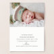 Anúncio de nascimento elegante moderno, com as palavras "alô pequeno" numa escrita moderna em folha real, na linha opcional por baixo (personalizar ou eliminar campo, se desejado) e informação de nascimento juntamente com uma dentro de fotografia.