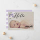 Cheio com o anúncio recém-nascido do bebê fotográfico com as Flores Brilhantes e Roxas Escuras com design de Margarida Branca no canto. Script Hello em preto. Personalize com seu próprio texto. Se você precisar de uma mudança de layout de cor ou design, envie um e-mail para paula@labellarue.com antes de fazer seu pedido. : Fotografia para Katina Bentley Photoographic | Scituate, Massachusetts | http://www.katinabentley.com :