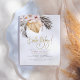 Um design rústico e elegante, com a inscrição em dourado moderna e um buquê floral de aquarela. O verde aparece no canto superior esquerdo e inclui folha de palma seca, grama-palma, frondes de palma, orquídeas e flores cor-de-rosa. "Hello Baby!" aparece abaixo na caligrafia com seus detalhes de eventos abaixo em uma simples tipografia. No canto inferior direito, há brilho de ouro falso para equilibrar o design e adicionar um pouco de brilho extra! Cartões invertidos a uma cor rosa empoeirada boêmica com um padrão de azulejo branco. Editável online, basta mudar o texto nas caixas de modelo fornecidas. Design seus próprios convites impressos e personalizados! Este tema verde do deserto é perfeito para primavera, verão e chás de outono. Como parte da seleção orçamentária no Zazzle, esta folha não é um tamanho de convite padrão ou qualidade de papel. Se quiser que este design num cartão de convite o encontre na nossa loja ou utilize o Zazzle Make Machine para o transferir para o produto da sua escolha. Sinta-se à vontade para me enviar mensagens para jogos de chá de fraldas, cartões de receita, cartões de agradecimento, placas, inserções ou quaisquer outras ideias personalizadas que você tenha - terei todo o prazer em ajudar!