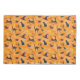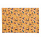 Padrão divertido, colorido, com temas bruxos em laranja brilhante de halloween, com uma bruxa, uma vassoura, uma lua, um morcego estranho, e, claro, mais de um gatinho.